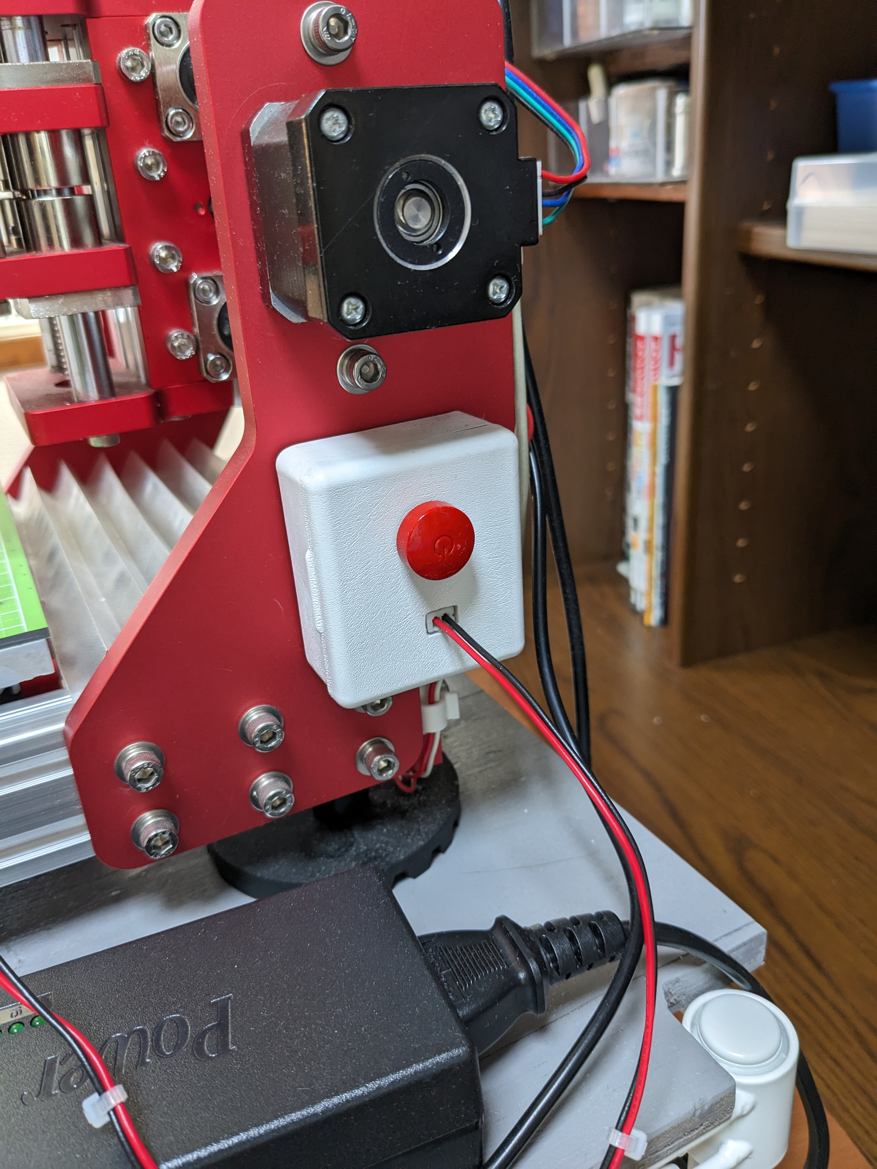 緊急停止スイッチです。多分不要だとは思います。下のコネクターは0点プローブの中継です。 |
