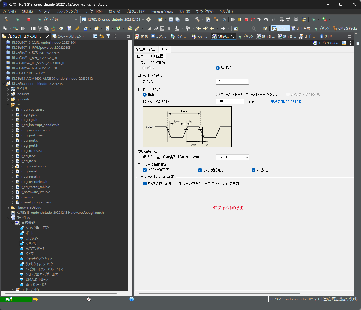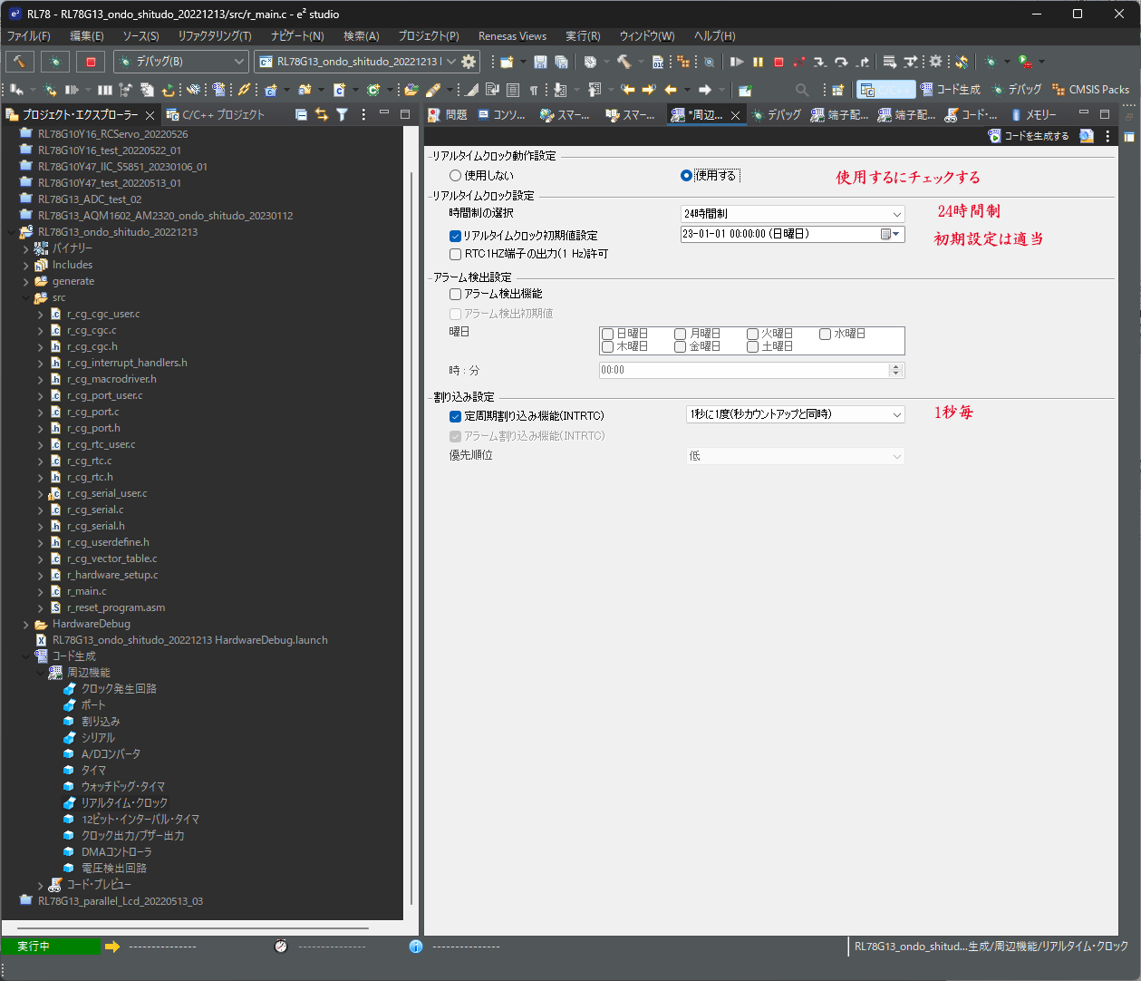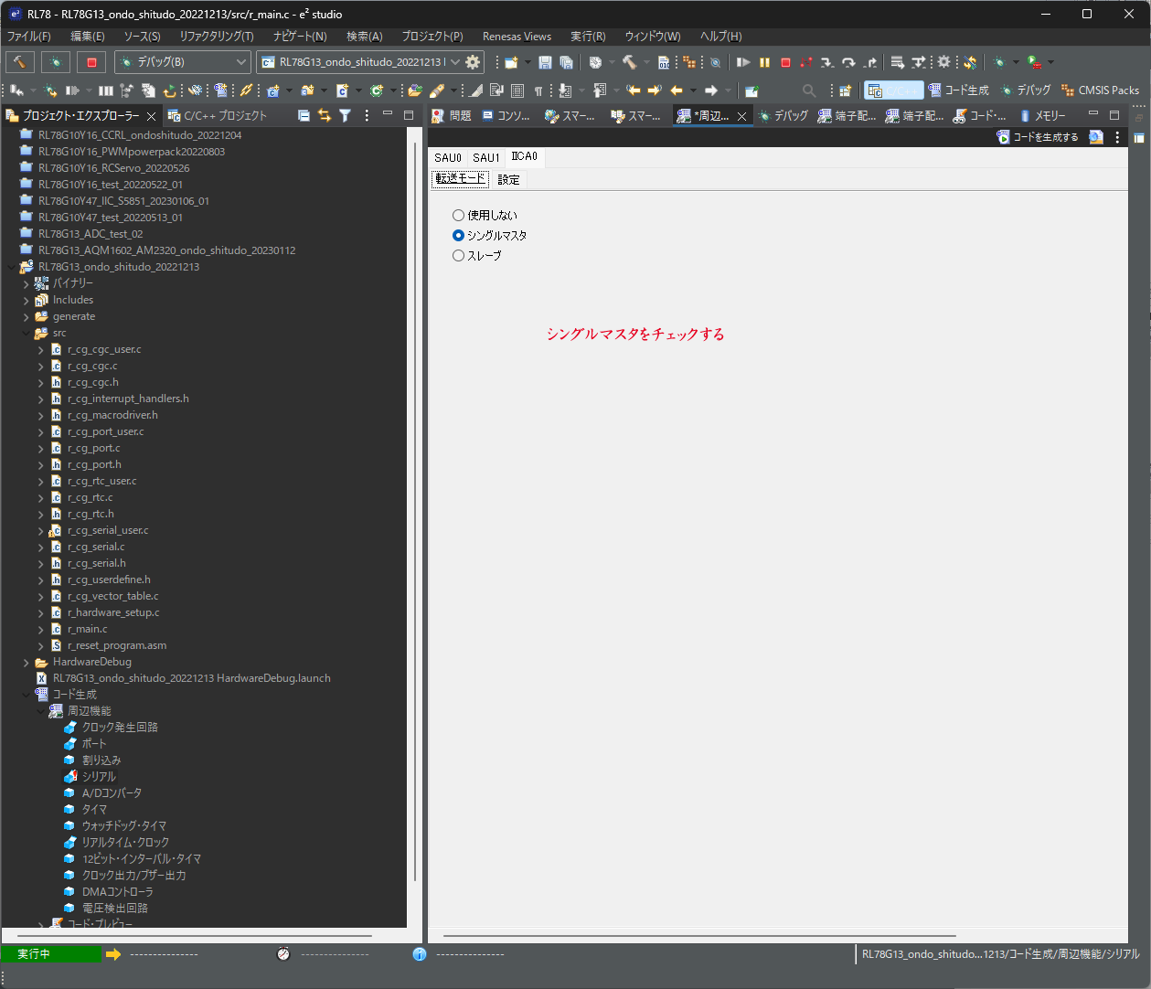 E2Studio(Version: 2022-10 (22.10.0))、Gccコンパイラ(4.9.2.202201)です。