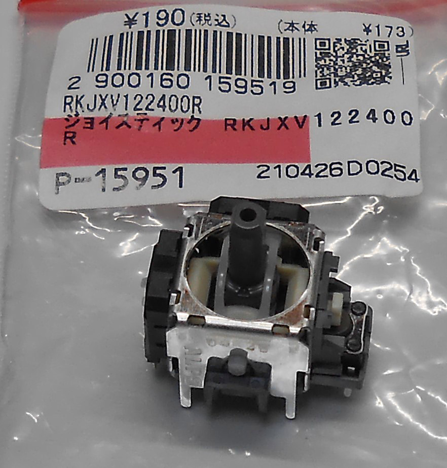 秋月さんで購入したジョイスティック 電気的には十分と思いますが機械的強度はどう見ても今回の用途には不足ということでして、依頼者から立派なジョイスティックをあてがわれましたので実際は別物を使用しました。 |