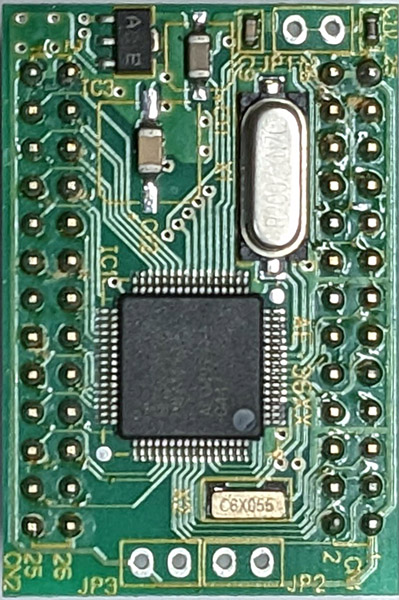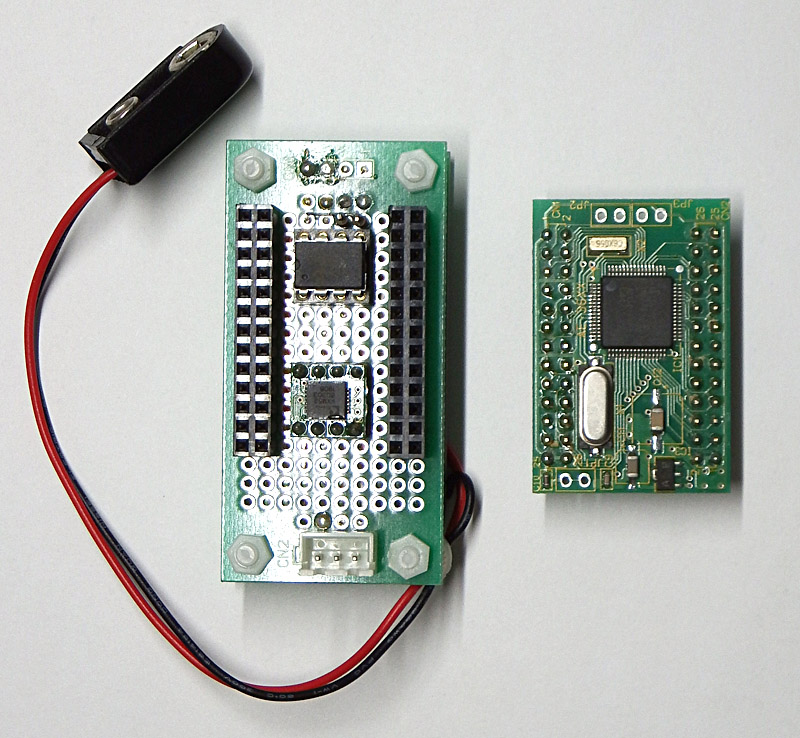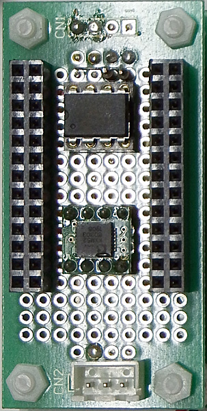 現物の写真です。3664基板、24LC512とKXM50、gyroの3段重ねです