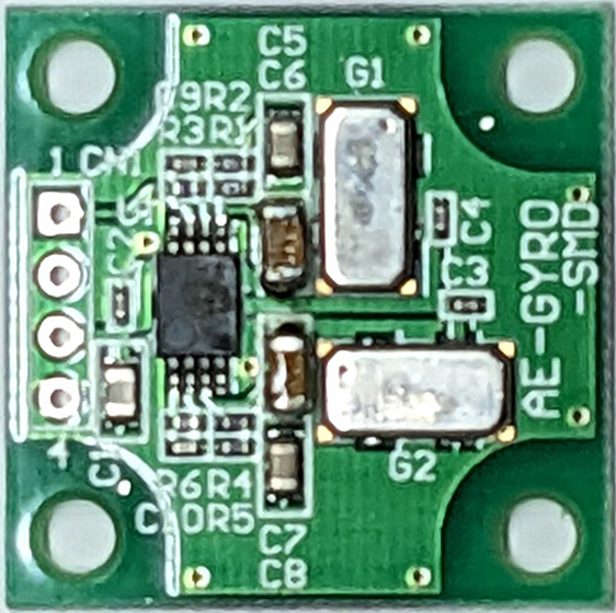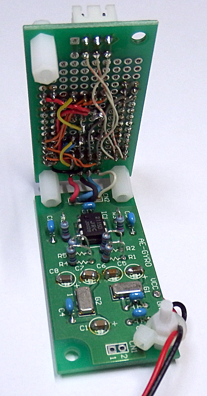 下側がジャイロ基板ですがずいぶん大きいですね。60x30あります。今の通販コードK-04912(13x14mm)と中身は ほぼ同じと思います。